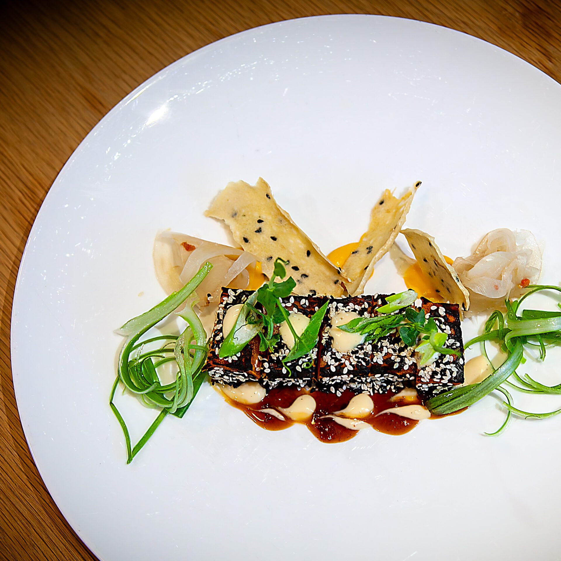 Sweet Potato Tataki I Sesame I Maple–Soy Glaze I Miso Mayo I Spring Onion I Sweet Potato Ginger Cream